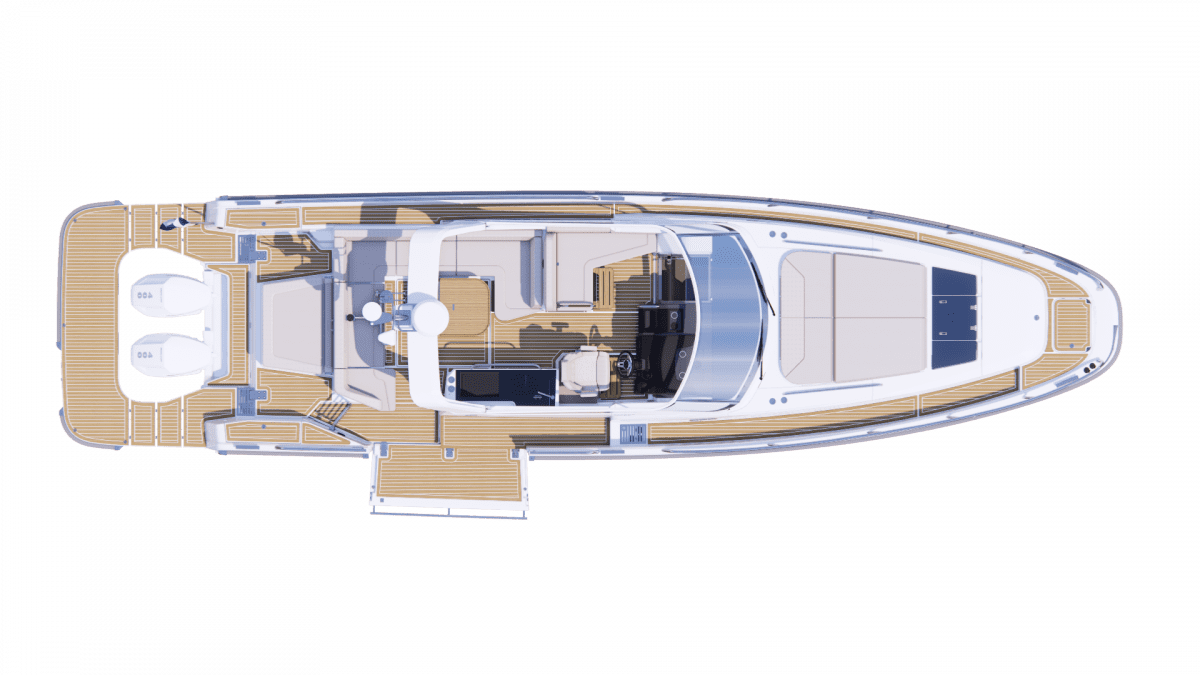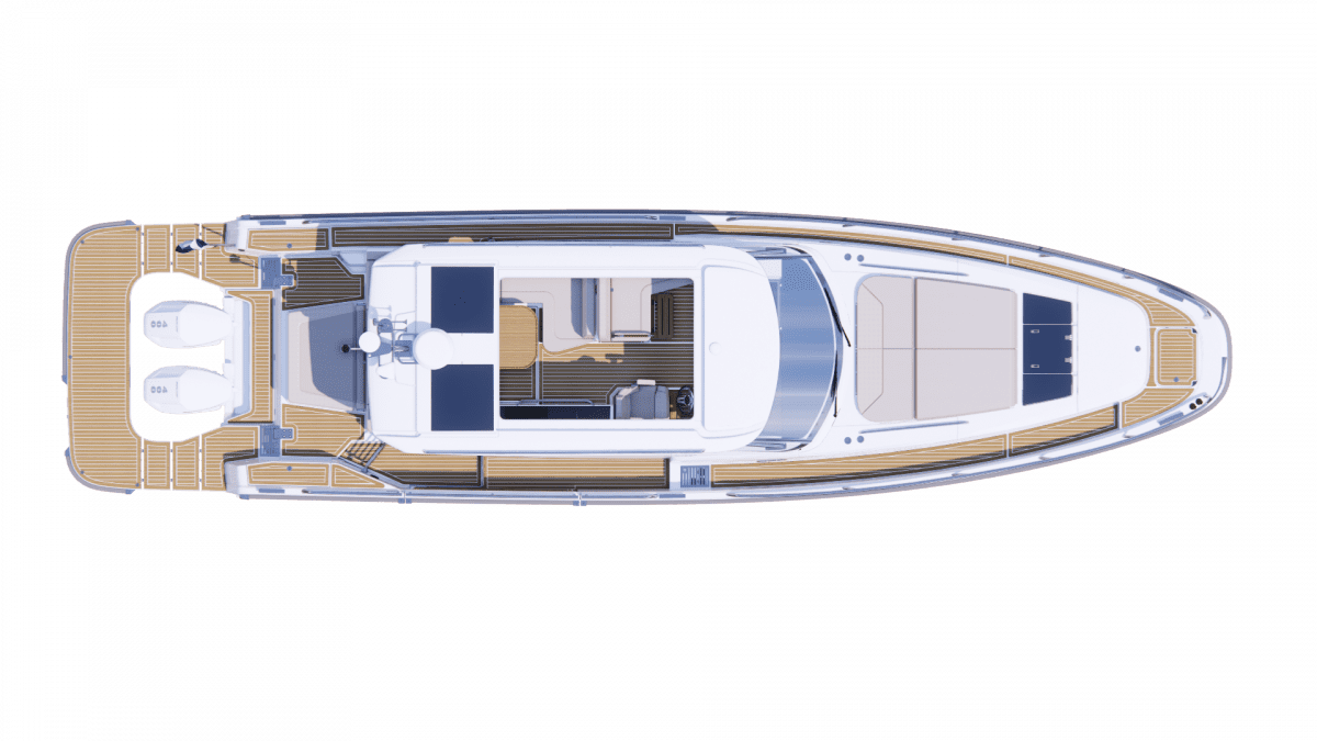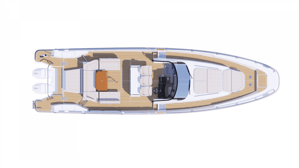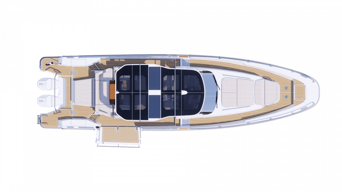 The T12 receives the most extensive updates. The new T-top is both wider and longer, providing enhanced shading and giving the T12 a completely new profile. With integrated solar panels and acrylic see-through sections with sunblock, it combines functionality with modern aesthetics. The T12 now features a side balcony on starboard side, extending the social space when at anchor. For the first time, the T12 can be fitted with dual Mercury V10 425hp engines, delivering exceptional performance for those who demand more power.