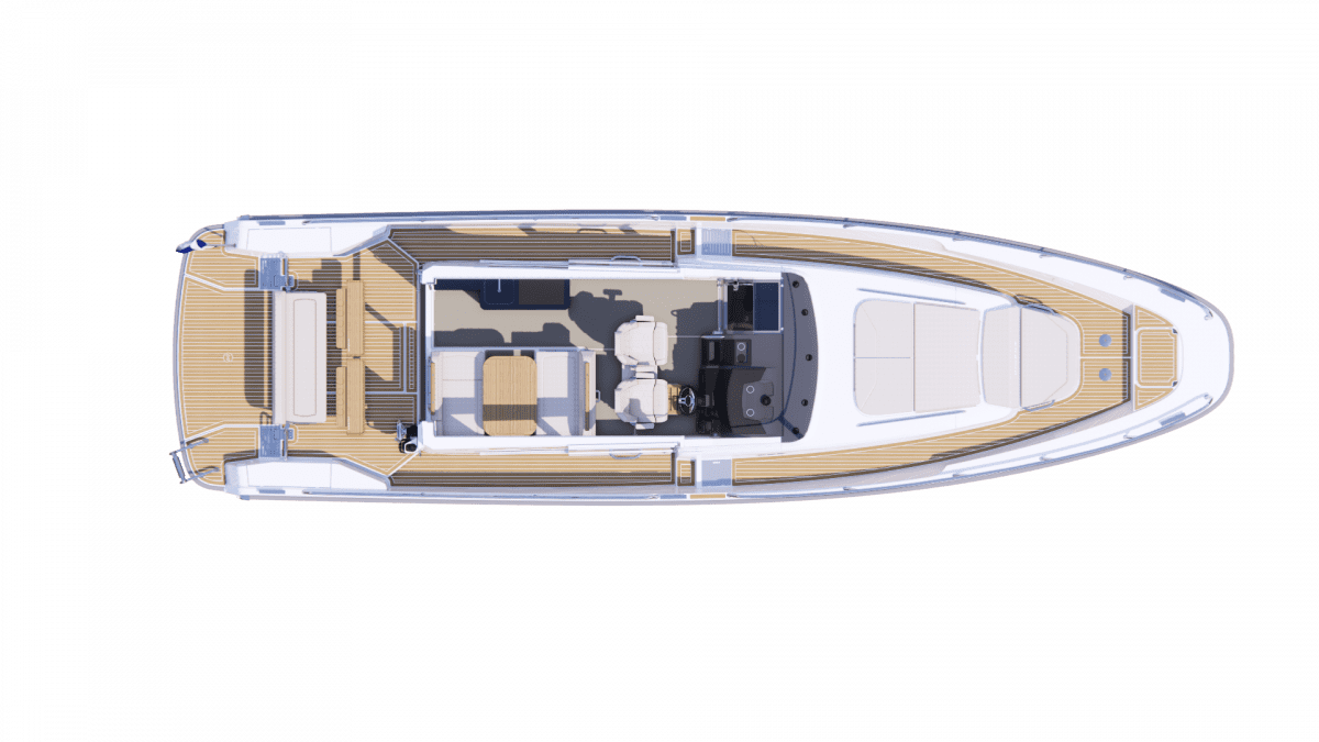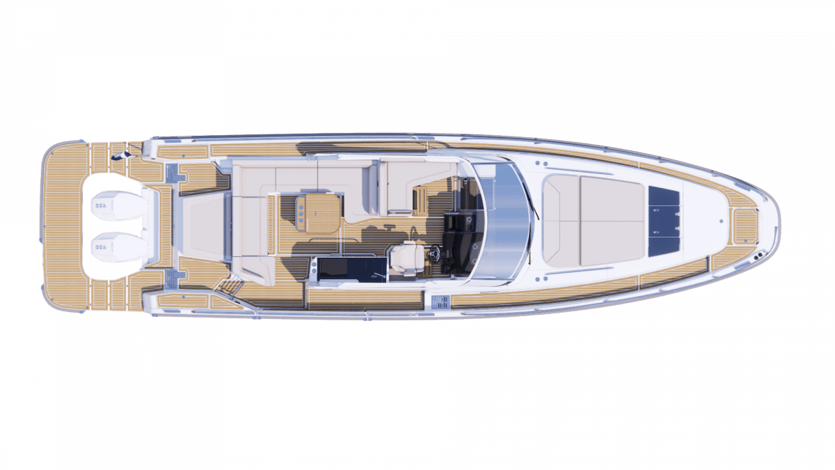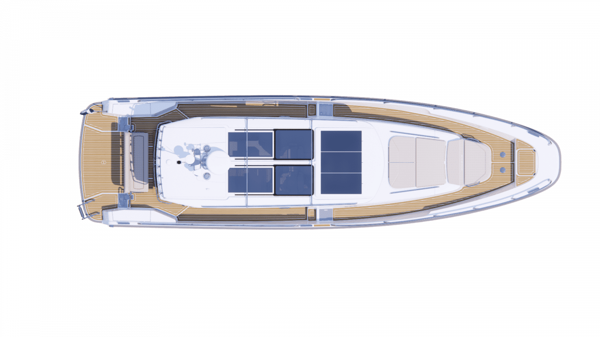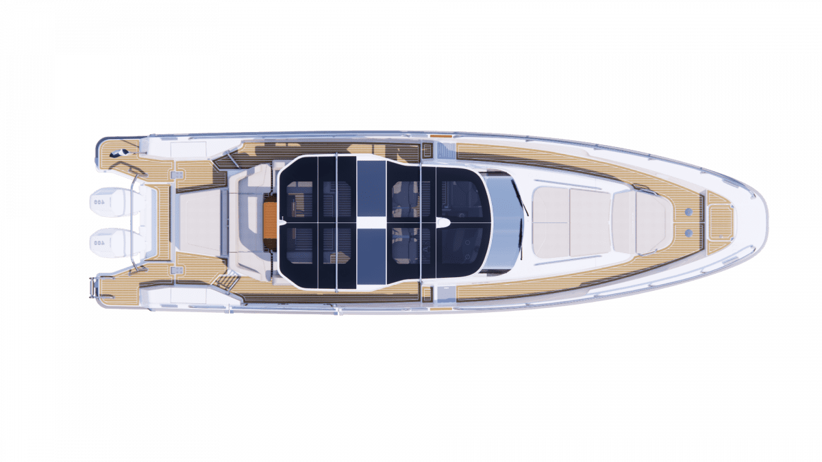 The T12 receives the most extensive updates. The new T-top is both wider and longer, providing enhanced shading and giving the T12 a completely new profile. With integrated solar panels and acrylic see-through sections with sunblock, it combines functionality with modern aesthetics. The T12 now features a side balcony on starboard side, extending the social space when at anchor. For the first time, the T12 can be fitted with dual Mercury V10 425hp engines, delivering exceptional performance for those who demand more power.