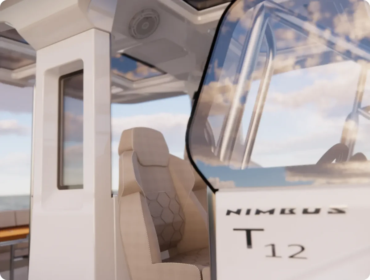 New Nimbus helm seats with enhanced ergonomics, lateral support, and high comfort