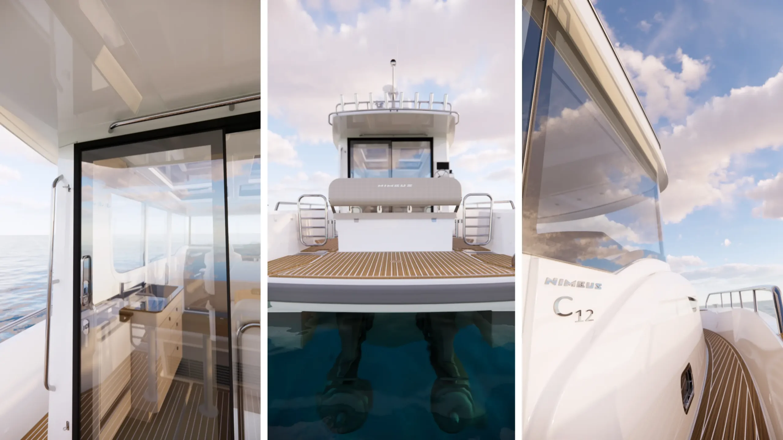 The W12 features the new Targa version with canopy in the style of the iconic Nimbus 32 Ballista, bringing heritage design into modern functionality. The starboard side balcony creates openness and flow for relaxation and entertaining.