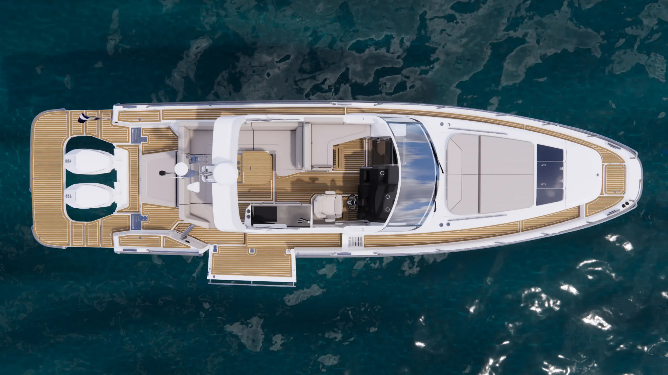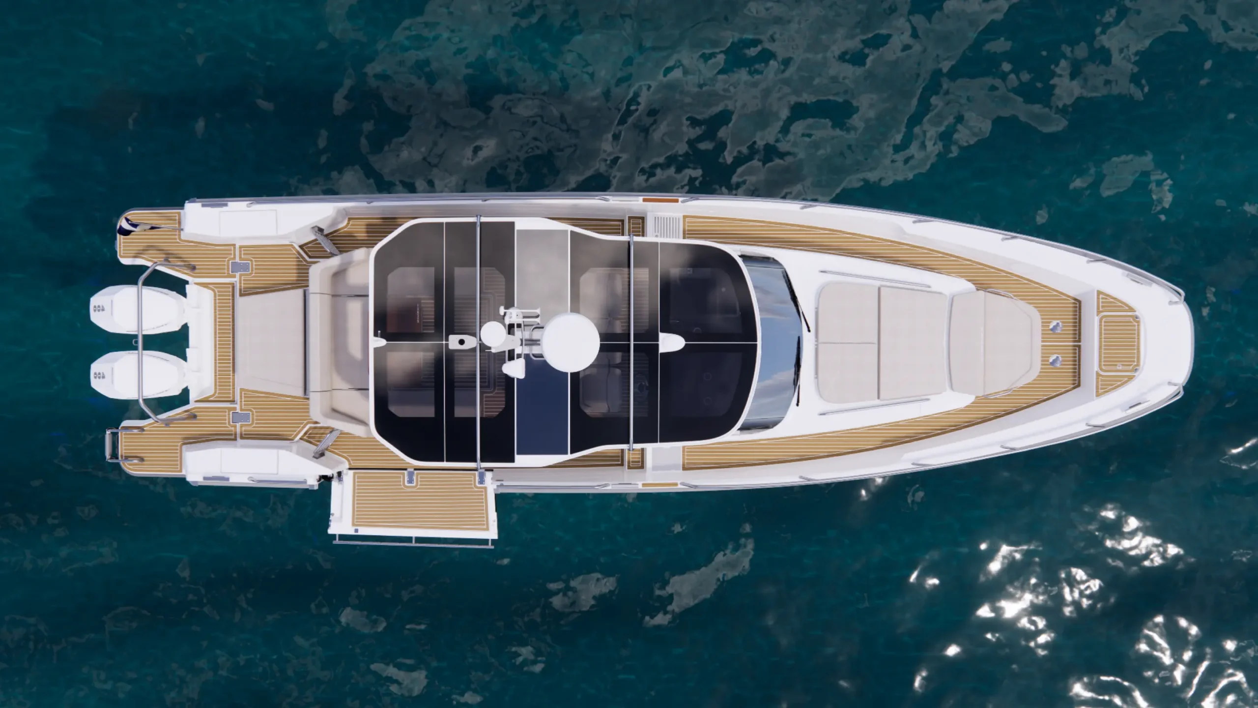 The T12 receives the most extensive updates. The new T-top is both wider and longer, providing enhanced shading and giving the T12 a completely new profile. With integrated solar panels and acrylic see-through sections with sunblock, it combines functionality with modern aesthetics. The T12 now features a side balcony on starboard side, extending the social space when at anchor. For the first time, the T12 can be fitted with dual Mercury V10 425hp engines, delivering exceptional performance for those who demand more power.