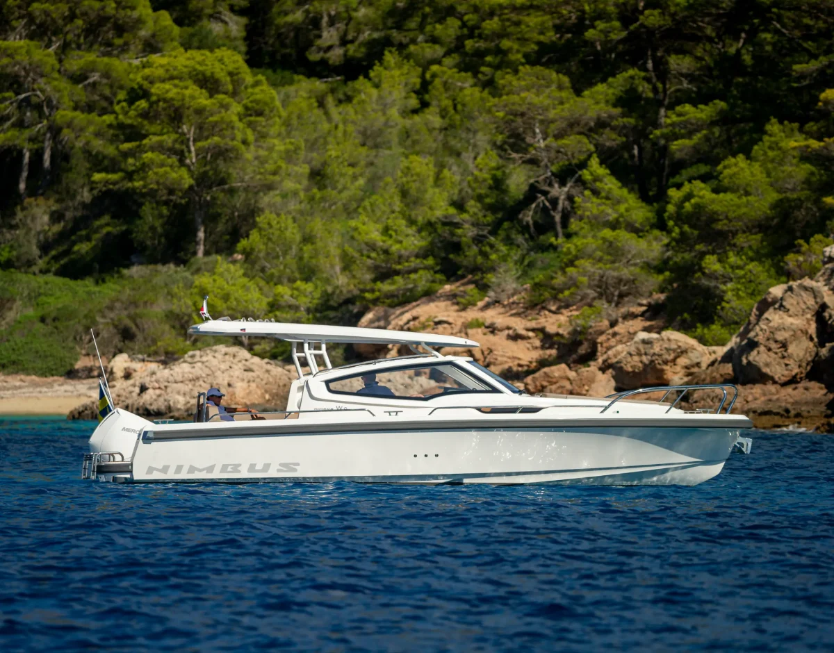 The W12 features the new Targa version with canopy in the style of the iconic Nimbus 32 Ballista, bringing heritage design into modern functionality. The starboard side balcony creates openness and flow for relaxation and entertaining.