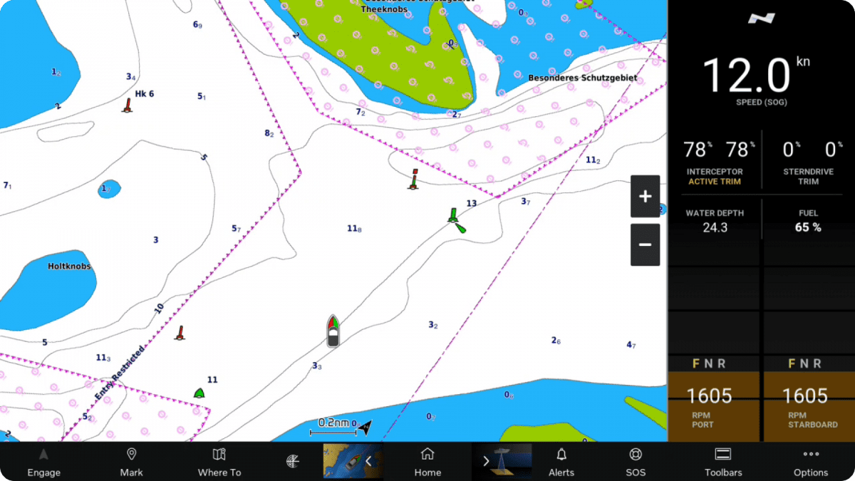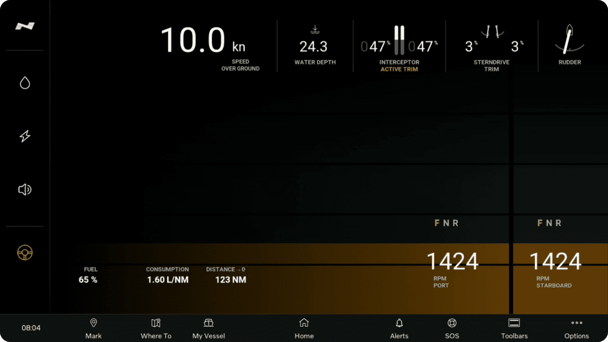 This new Nimbus UI will give the user an easier understanding and monitoring of different data/values that are relevant for the boat. The UI is consciously stripped down and developed for user-friendliness. You will get all the info that you need in a few different predefined screens in your MFD. This is yet another step for Nimbus, always developing user-friendly and intuitive solutions for the conscious boat owner.